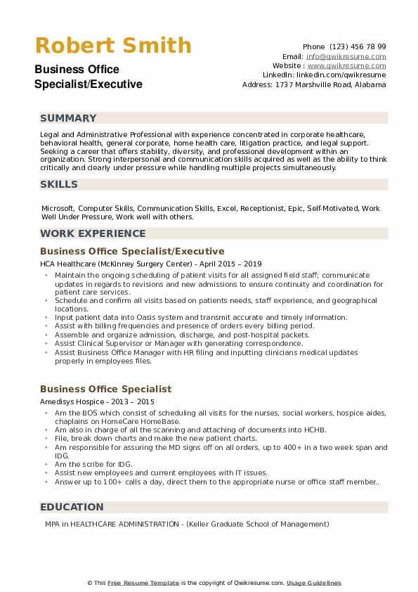 Business Office Specialist Resume Samples QwikResume