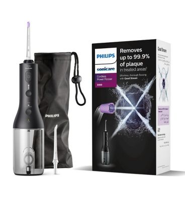 Buy philips sonicare cordless power flosser 3000 oral irrigator black hx3806/33 and collect advantage card points when you spend £1. Lowest price for philips sonicare 3000 hx3806 is £60.00. What is the difference between the power flosser nozzles? Why is my sonicare cordless power flosser leaking water? Flossing reinvented with quadstream technology. Flossing reinvented with quadstream technology. Effortlessly thorough cleaning between teeth to improve your gum. Philips hx3826/31 sonicare 3000 power flosser. The philips sonicare cordless power flosser 3000 is a water. 2 flossing modes, 3 intensity settings.
