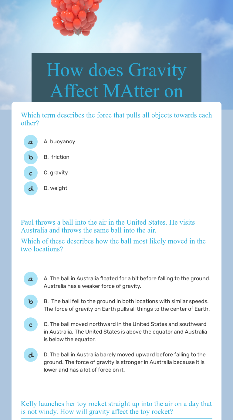 How does Gravity Affect MAtter on Earth Interactive Worksheet by