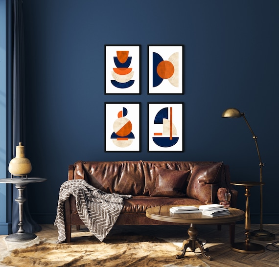 4pc Blue and Orange Wall Art Printable Wall Art Modern Etsy