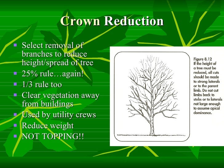 PPT Pruning Windbreaks PowerPoint Presentation, free download ID What Is Crown Reduction Pruning The goal of tree crown reduction is to reduce the crown (exactly as the name implies!) in order to reduce the overall weight and size of the tree. Crown reduction reduces the overall size of a tree by selectively pruning branches. What is tree crown reduction? Professional arborists follow a systematic approach, considering factors like the tree species, age, and. What Is Crown Reduction Pruning.