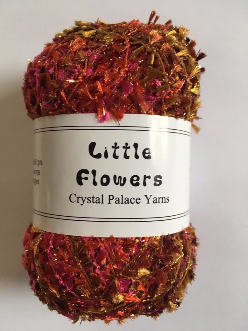 Check out this item in my Etsy shop Little Flowers Yarn Crystal palace little flowers is a versatile fashion yarn to work by itself or carried along with other yarns to add a little sparkle. A great addition to felted items. The current version is 130 yds/50 grams, with 96%. A novelty yarn to knit alone or as a carry along with other yarns. Check out our little flowers yarn selection. Little Flowers Yarn.
