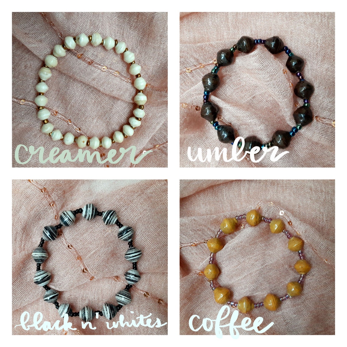 Paper Bead Uganda Bracelets Handmade Neutral Colored Beaded Etsy