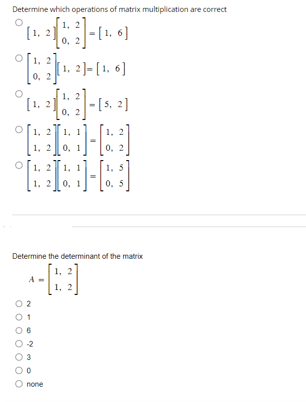 Solved Determine which operations of matrix multiplication