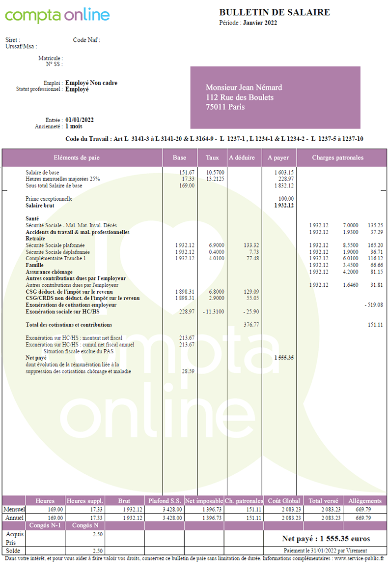 Bulletin De Paie 2022 Exemple Image to u