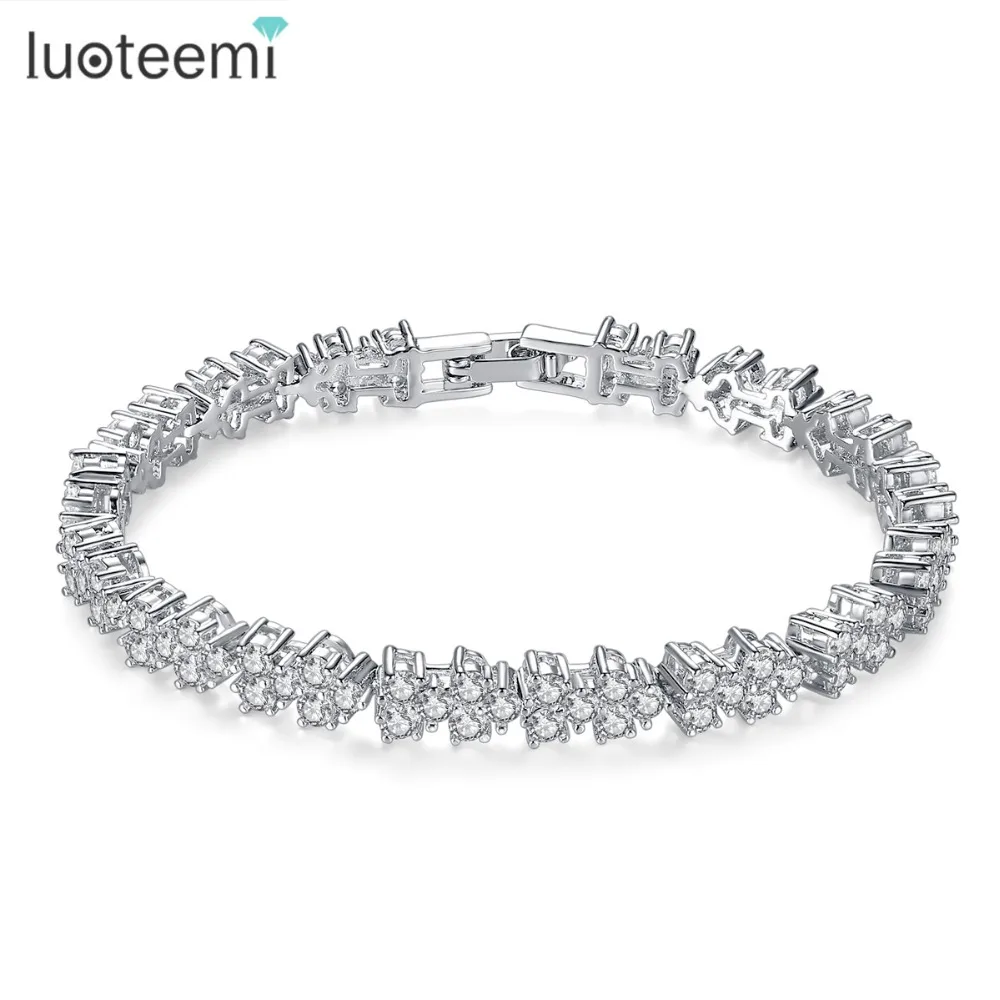 LUOTEEMI Luxury White Gold Color Chain Link Bracelet for Women Wedding