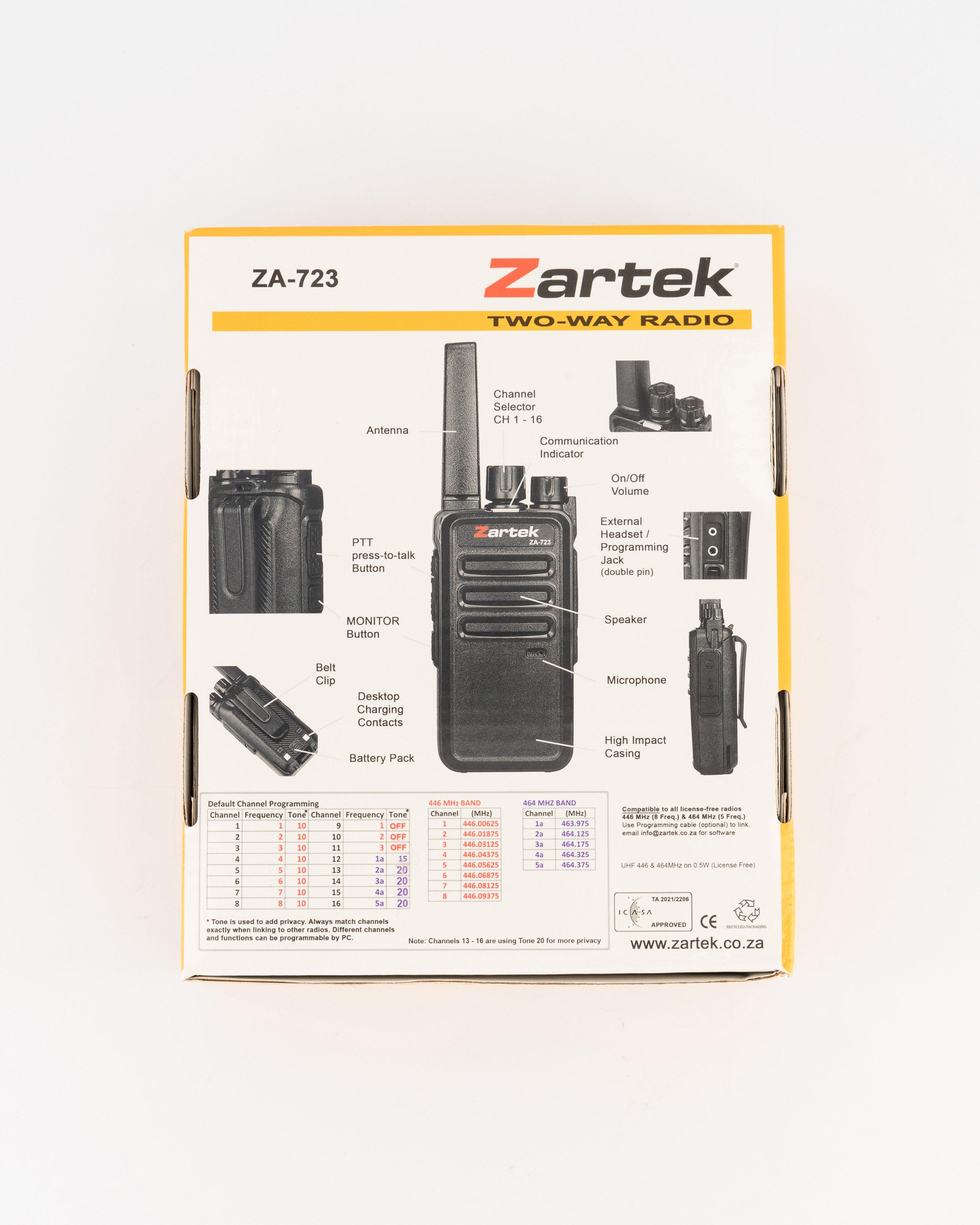 Zartek ZA723 Two Way Radio Zartek 2 Way Radios For Sale Cape Town External microphone / speaker jack. Ideal for events, outdoor activities, security, construction, and more, this. Also vox, scrambler, callring, emergency. Zartek 2 Way Radios For Sale Cape Town.