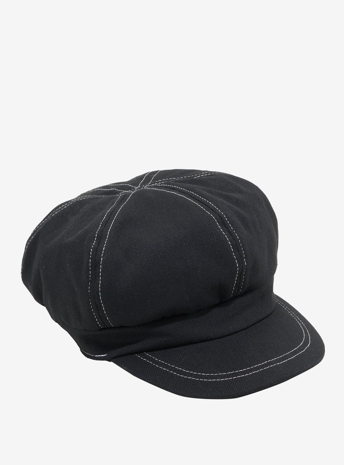 Black & White Contrast Stitch Cabbie Hat Hot Topic