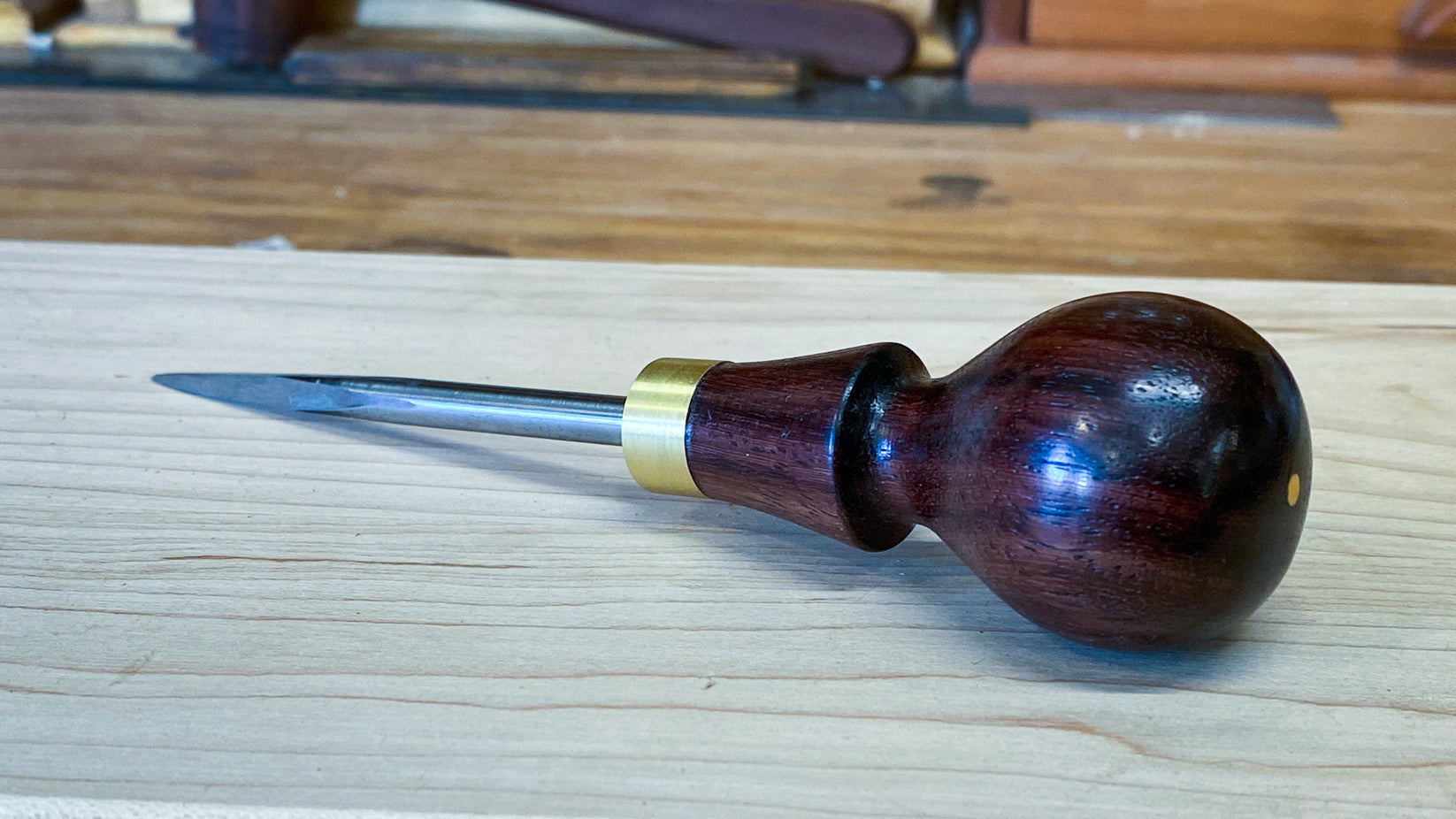 Shenandoah Tool Works Padauk Birdcage Awl Birdcage Awl Handle If you want to keep the existing handle that's fine, just skip straight to the grinding step. This video shows how i turned the handle. Birdcage awls are used by pushing down and twisting. Blade length is 3 1/2, handle. It has a beautifully turned stained beech handle with steel ferrule and a high carbon tool steel blade. A birdcage. Birdcage Awl Handle.