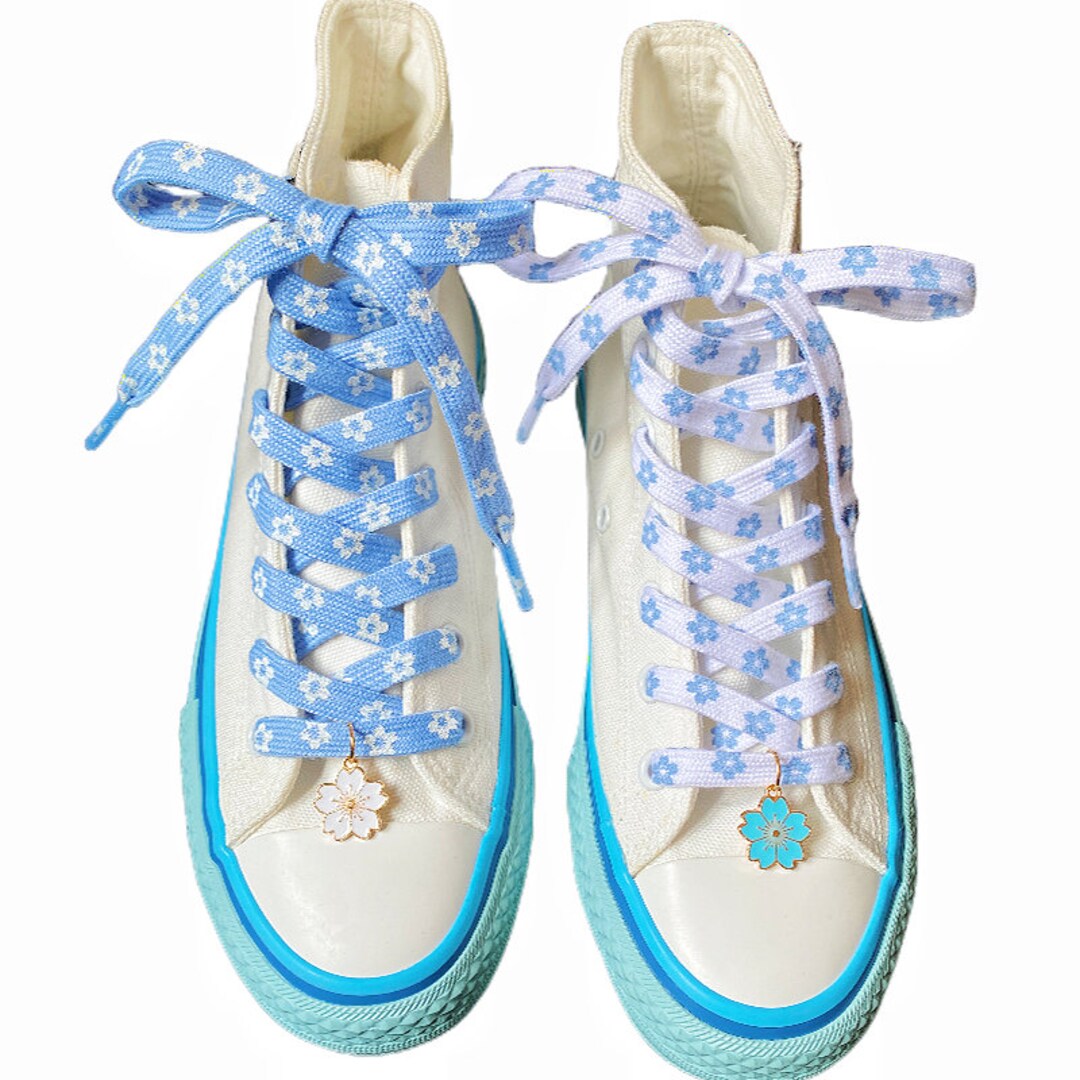 Blue and White Sakura Shoe Laces With Sakura Charms Set Etsy
