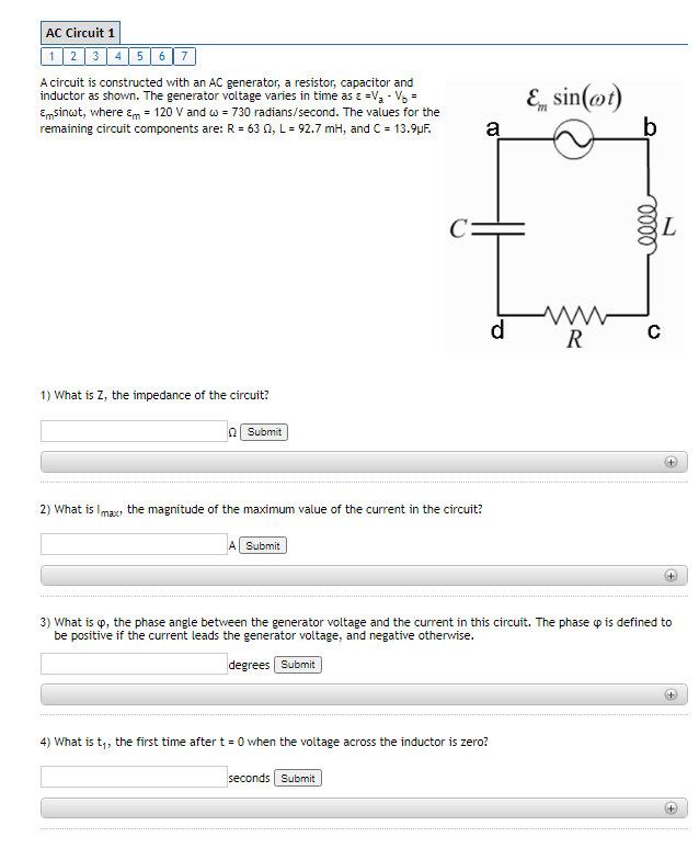 Solved A circuit is constructed with an AC generator, a