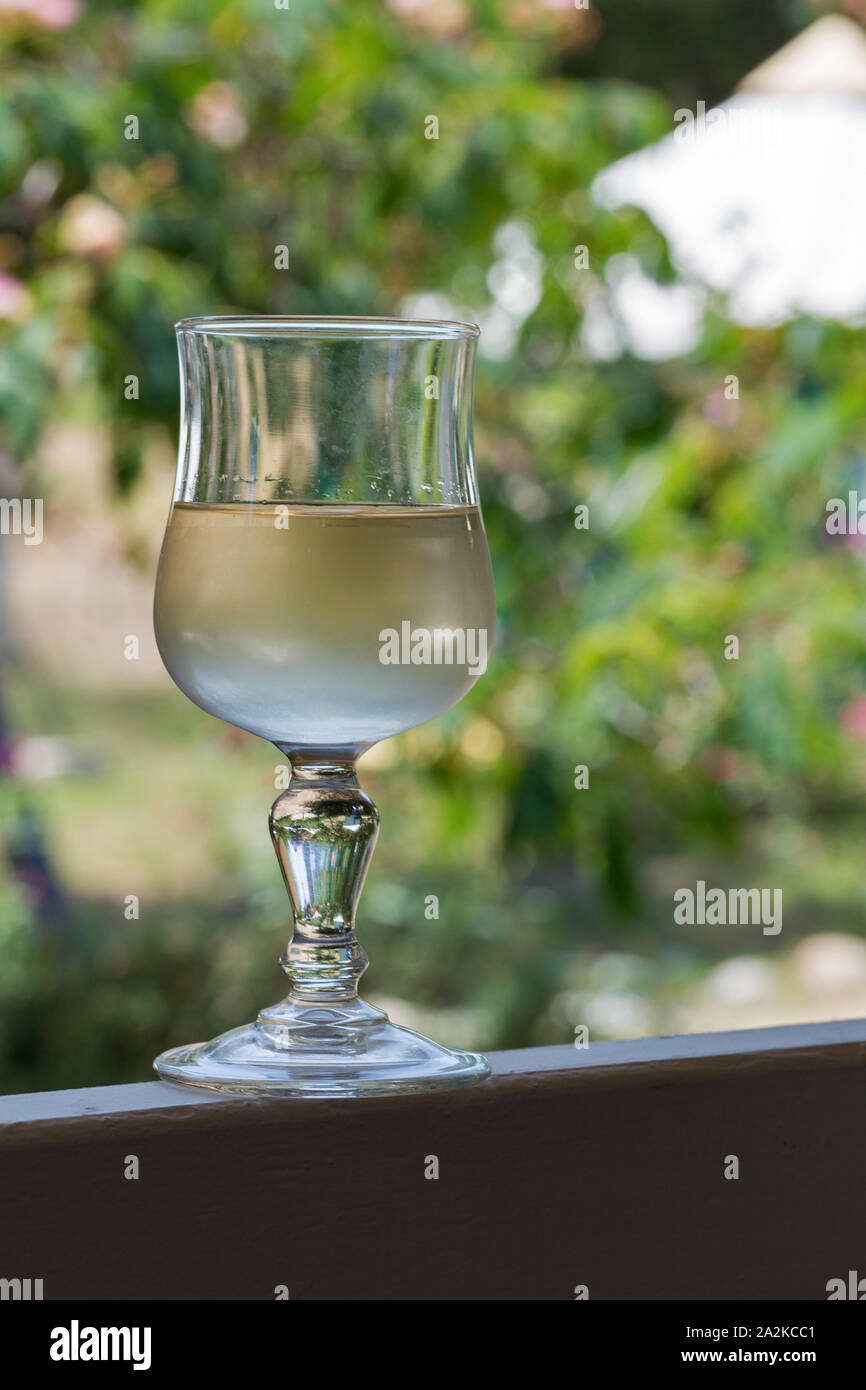 White wine glass outdoor closeup on nature background Stock Photo Alamy