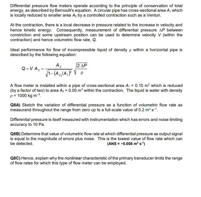 Solved Differential pressure flow meters operate according