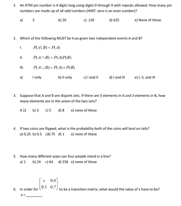 Solved 1. An ATM pin number is 4 digits long using digits 0