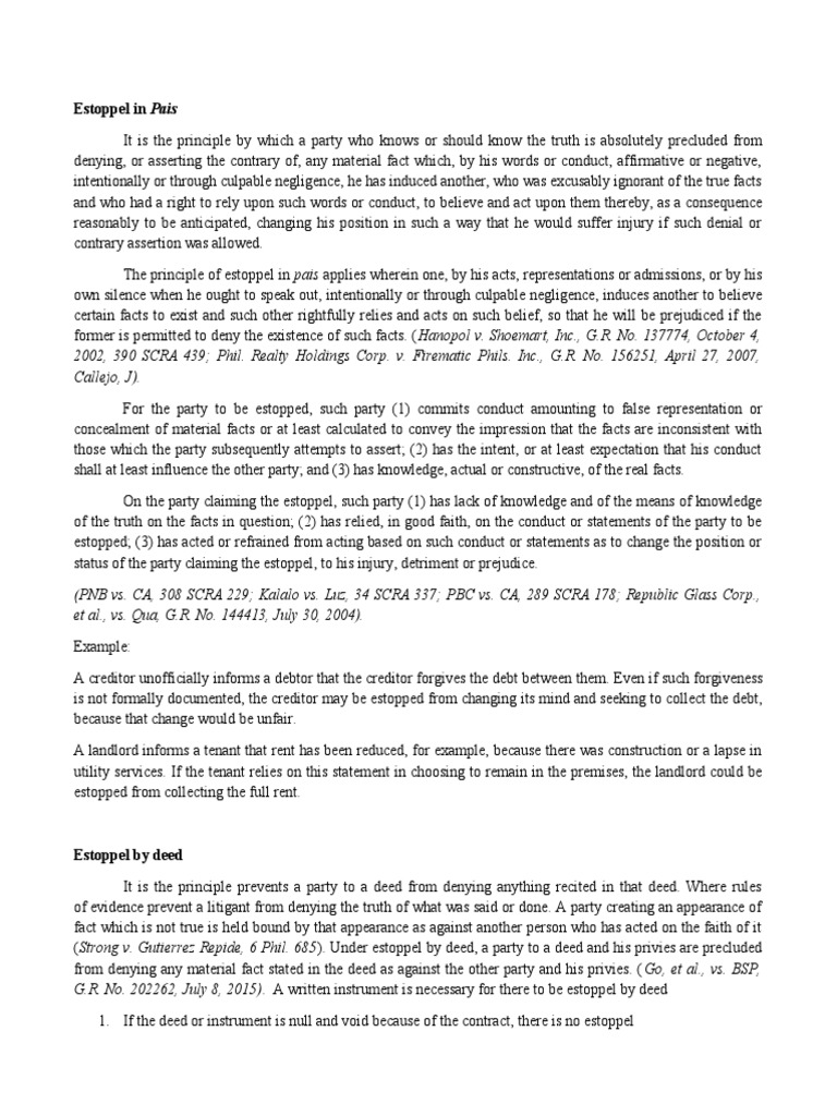 A Comprehensive Explanation of Estoppel Doctrines Estoppel in Pais