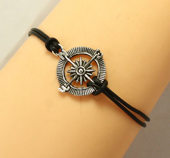 Leather Bracelet Compass Bracelet Nautical Charm Wrap Bracelet on Luulla