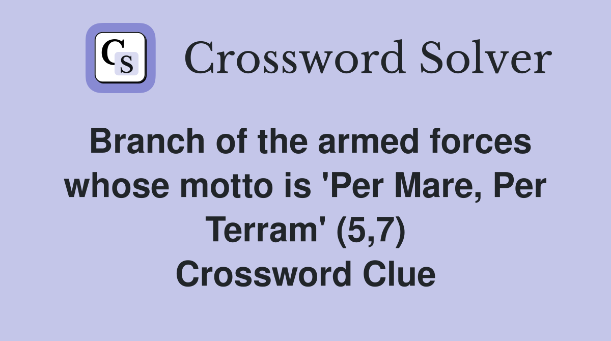 Branch of the armed forces whose motto is 'Per Mare, Per Terram' (5,7