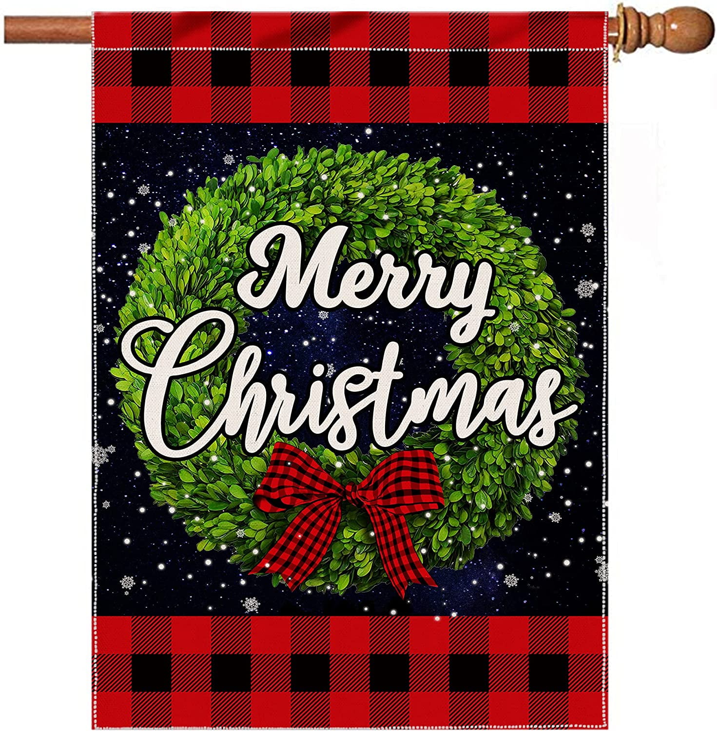 28x40 Double Sided Winter Flag Boxwood Wreath Buffalo Plaid Outdoor