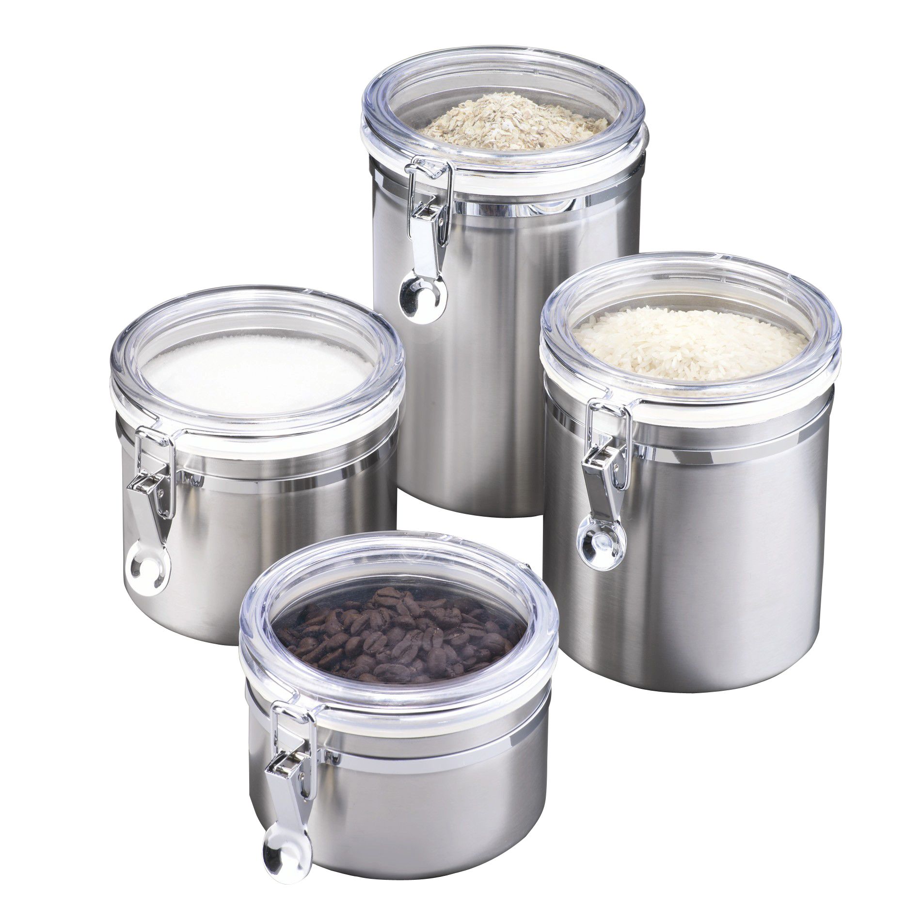 Oggi™ Airtight Stainless Steel Canisters with Acrylic Tops (Set of 4 Stainless Steel Canisters Kmart Discover house's collection of kitchen storage canisters and containers. Some are designed to store dried goods like flour, coffee, or. From mason jars to tin canisters, kmart. Stainless steel containers come in all shapes and sizes. Jars and canisters are great for storage and for keeping food fresh, and they can look amazing, too. Our wide selection of food containers. Stainless Steel Canisters Kmart.