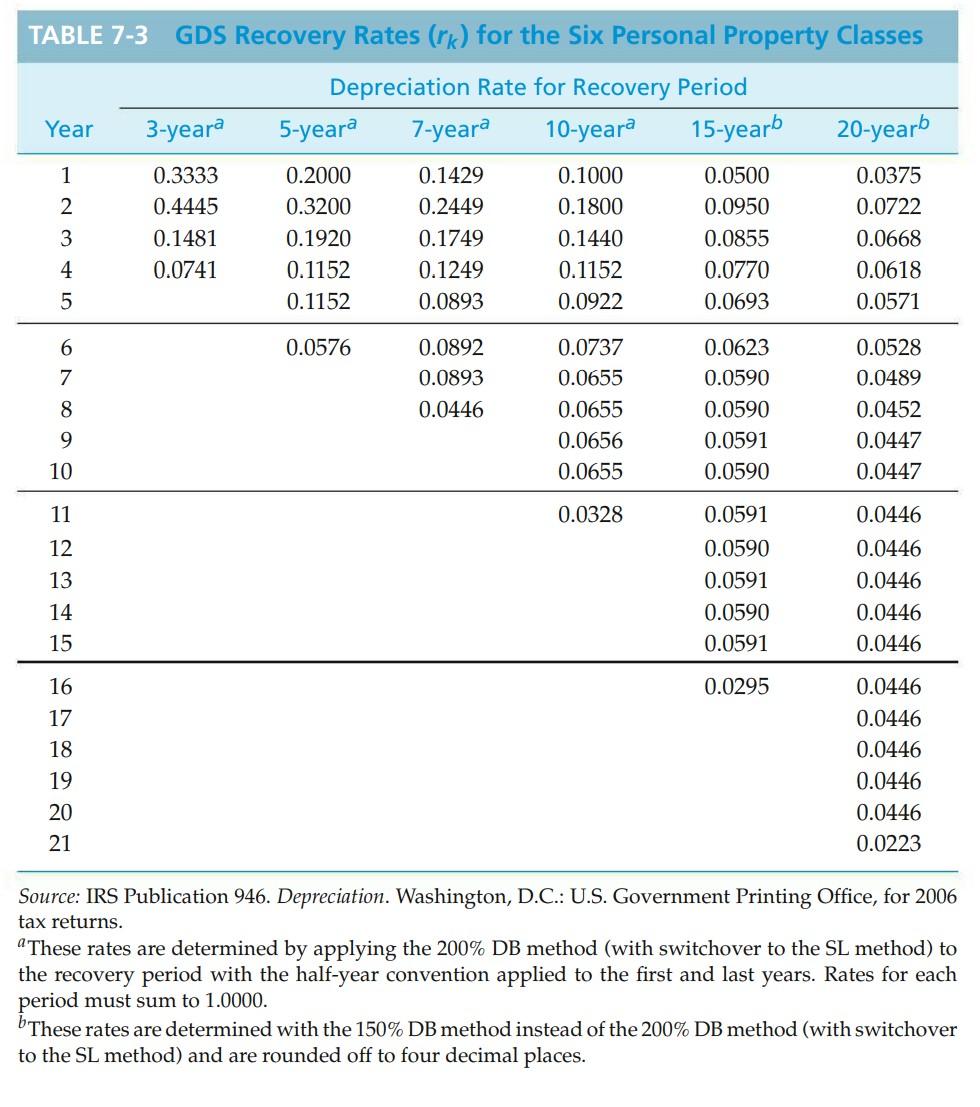 TABLE 72 MACRS Class Lives and Recovery Periodsa