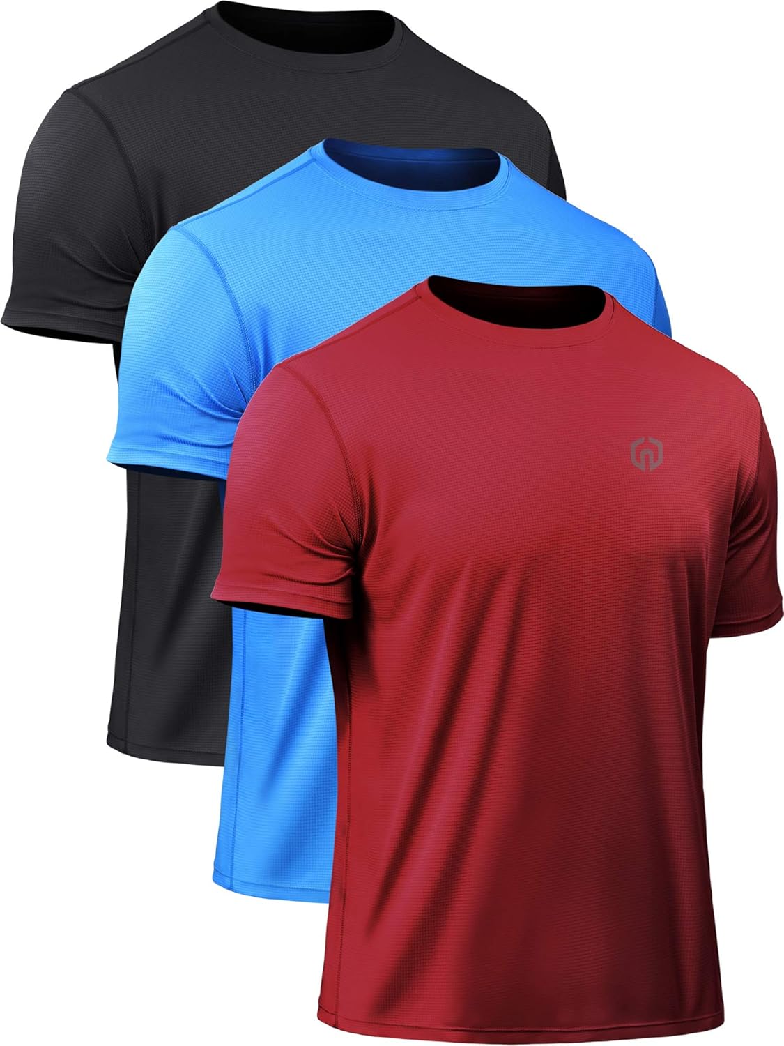 Neleus Men's Mesh Workout Running Shirts, 5052, 3 Pack, Black, Blue