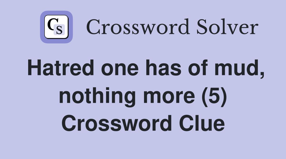 Hatred one has of mud, nothing more (5) Crossword Clue Answers