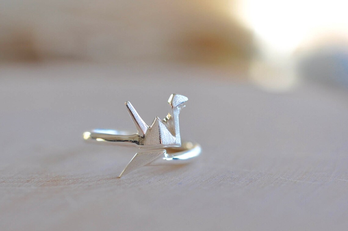 Origami Crane Ring Sterling Silver Bird Origami Ring Etsy Paper Crane Ring Check out our ring paper crane selection for the very best in unique or custom, handmade pieces from our rings shops. This adorable diy silver ring features a cute paper crane design that is perfect for any occasion. These origami earrings are so cute and they’re also really easy to make! Check out our papercrane ring selection for the very. Paper Crane Ring.