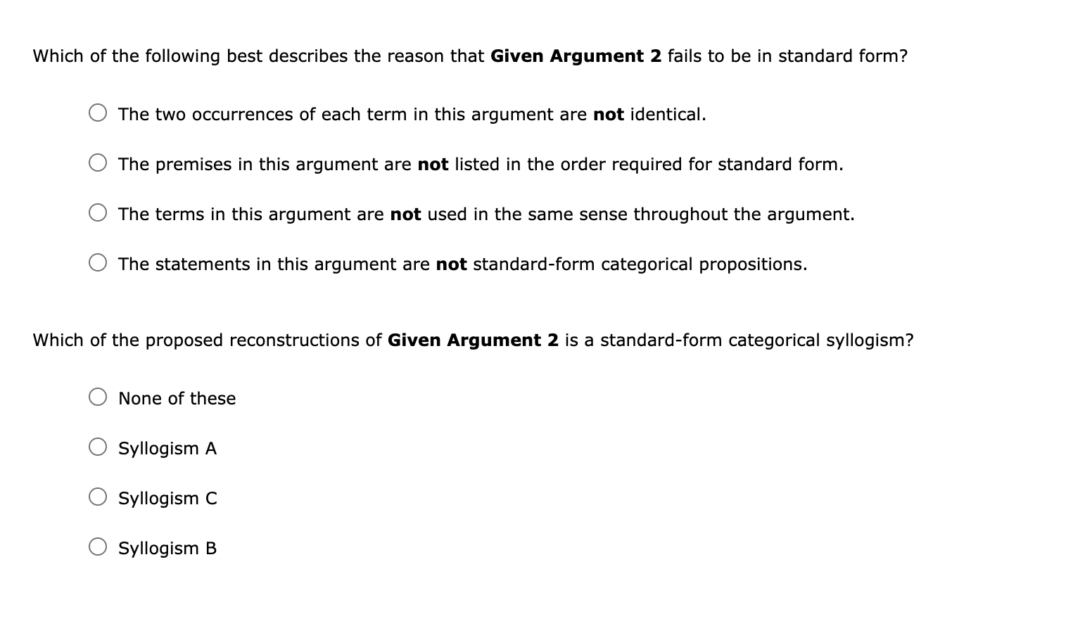 Solved 2. StandardForm Categorical Syllogisms In order to Standard Categorical Form Examples The quantity of a standard form categorical proposition determines the distribution of the subject (such that if the quantity is universal,. The mood of a categorical syllogism in standard form is a string of three letters indicating, respectively, the forms of the major. Copula (“are” or “are not”) predicate. Study categorical logic examples with aeio claims and understand the quantifier,. Standard Categorical Form Examples.