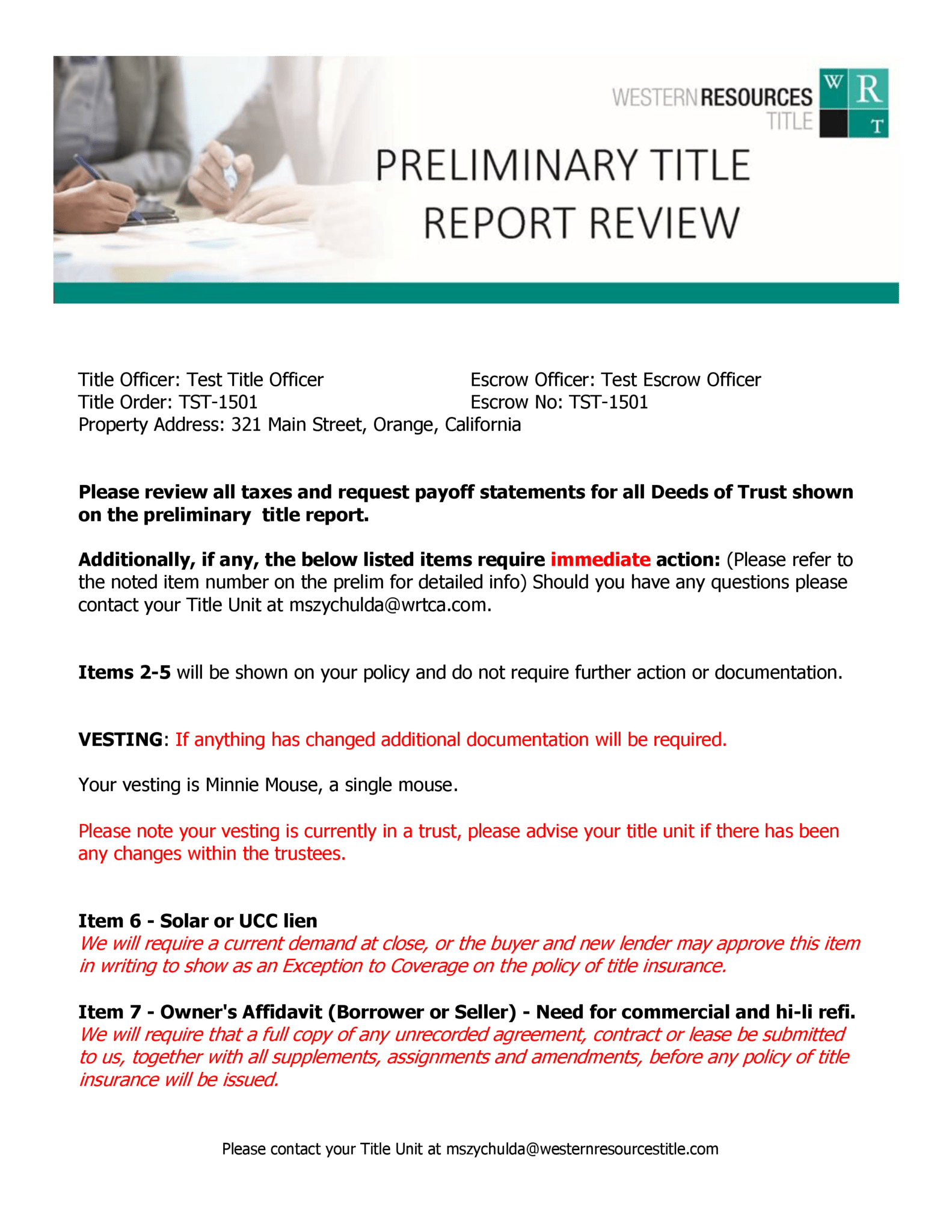 Sample Prelim Review Report Western Resources Title