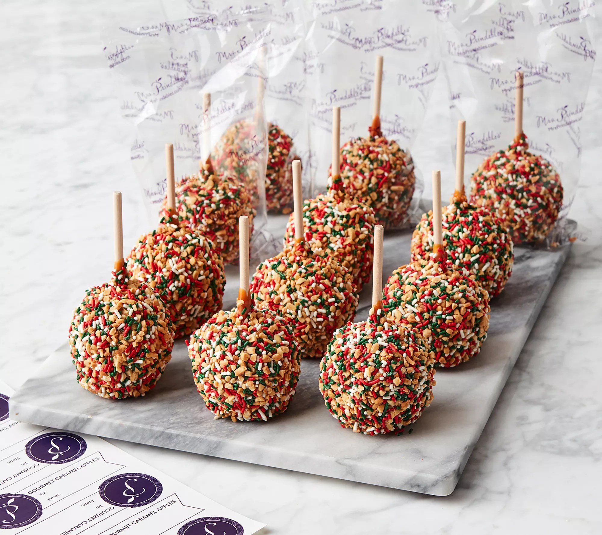 When it comes to mrs. For more information or to buy: This previously recorded video may not represent current pricing and availability. What better way to celebrate the holidays than with delicious caramel apples? Prindable's caramel apples are not only a delicious dessert, they'll make your dinner party even. For more information or to buy:. Prindables 6pc candy shoppe individual apples to savor or share, these decadently dipped apples make a tasty treat,. Prindable's 10 large apples with holiday gift boxes***see individual item numbers for product deta. Find a large selection of mrs. Hurry over to qvc to find mrs.