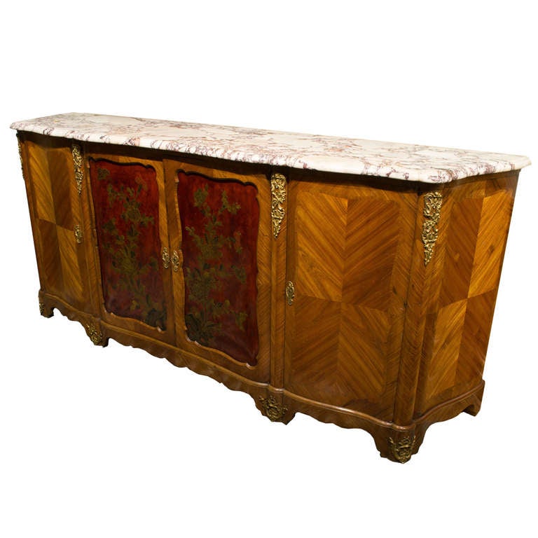 A monumental French parquetry buffet with red lacquer doors at 1stdibs