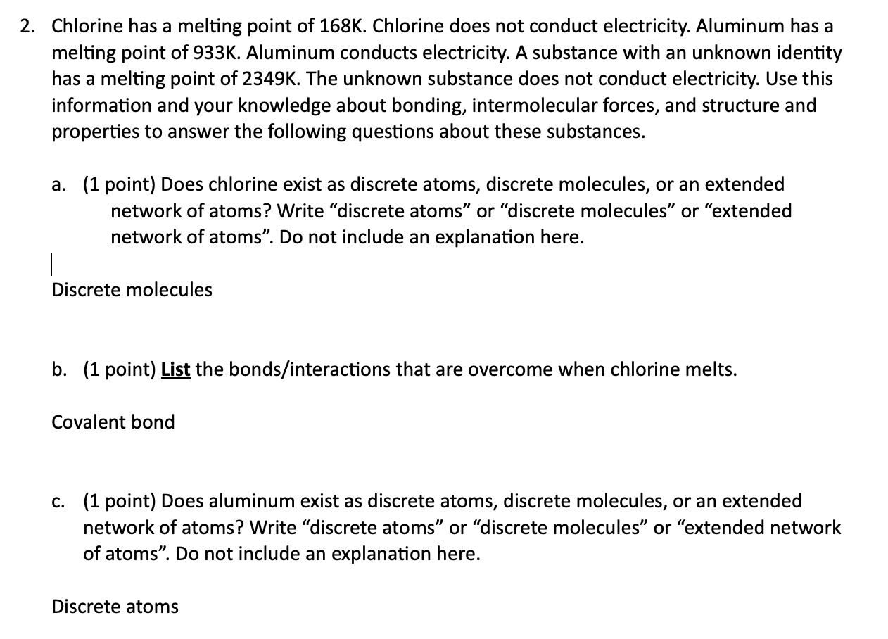 Solved 2. Chlorine has a melting point of 168K. Chlorine