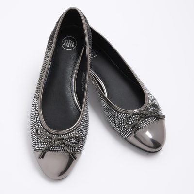Black diamante ballet shoes River Island