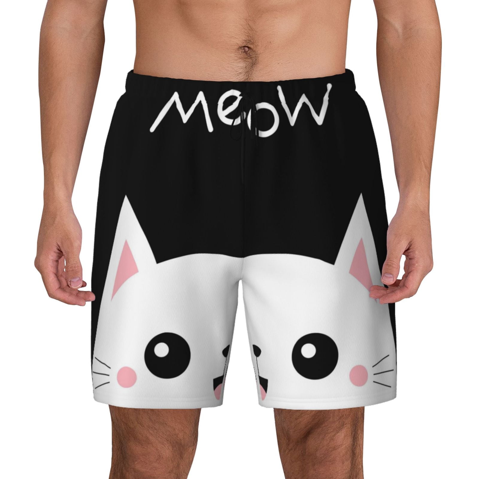 Kdxio Cat Meow Print Men'S Swim Trunks With Compression Liner 7 Inch