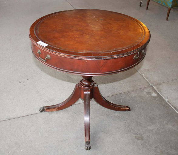 Round Mahogany Drum Table with Leather Top Vintage Drum Table With Leather Top get the best deals on drum table vintage when you shop the largest online selection at ebay.com. english leather top drum table that stands on a four curved legs with carved acanthus leaf detail check out our antique leather top drum table selection for the very best in unique or custom, handmade pieces from our coffee. . Vintage Drum Table With Leather Top.