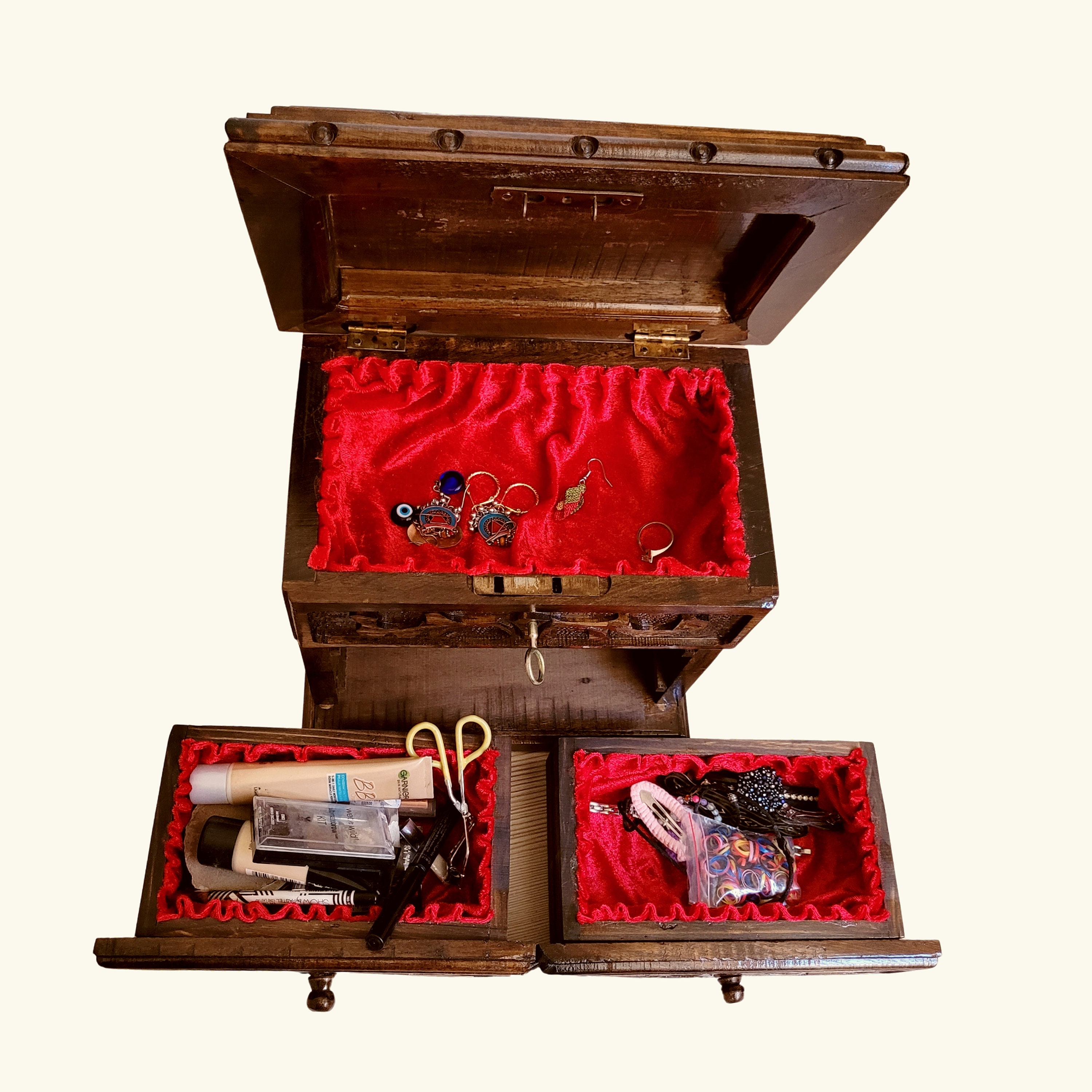 Walnut Carved Wooden Jewelry Box Locking Jewelry Box With Etsy