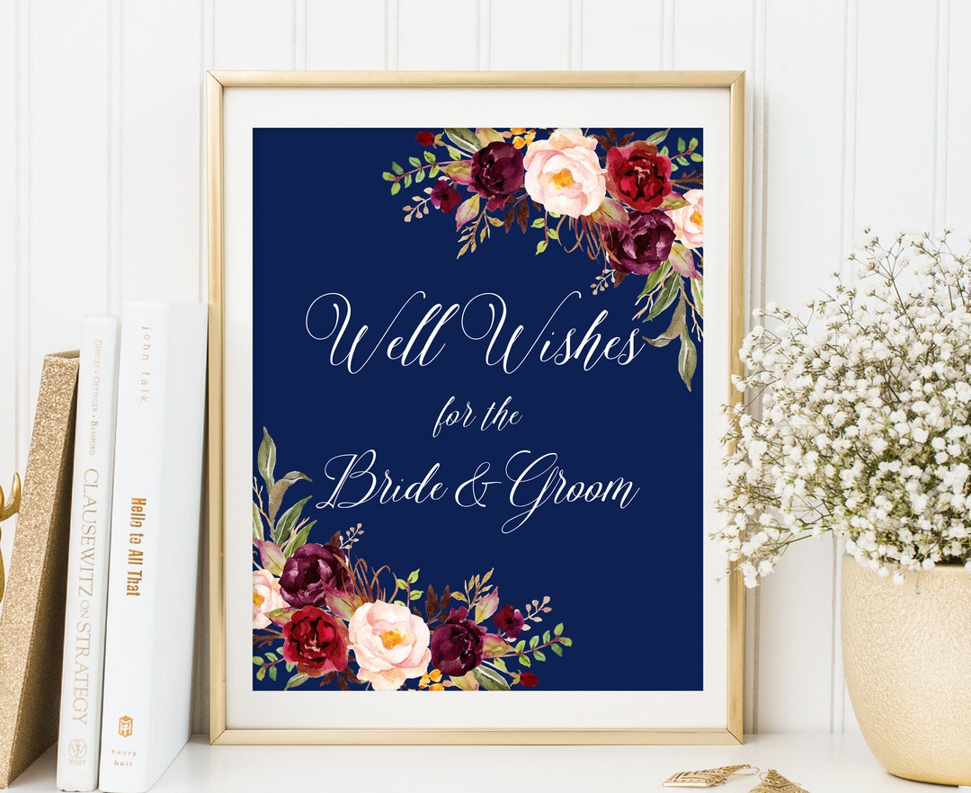 Well Wishes for the Bride and Groom Wishes Wedding Sign Navy Etsy