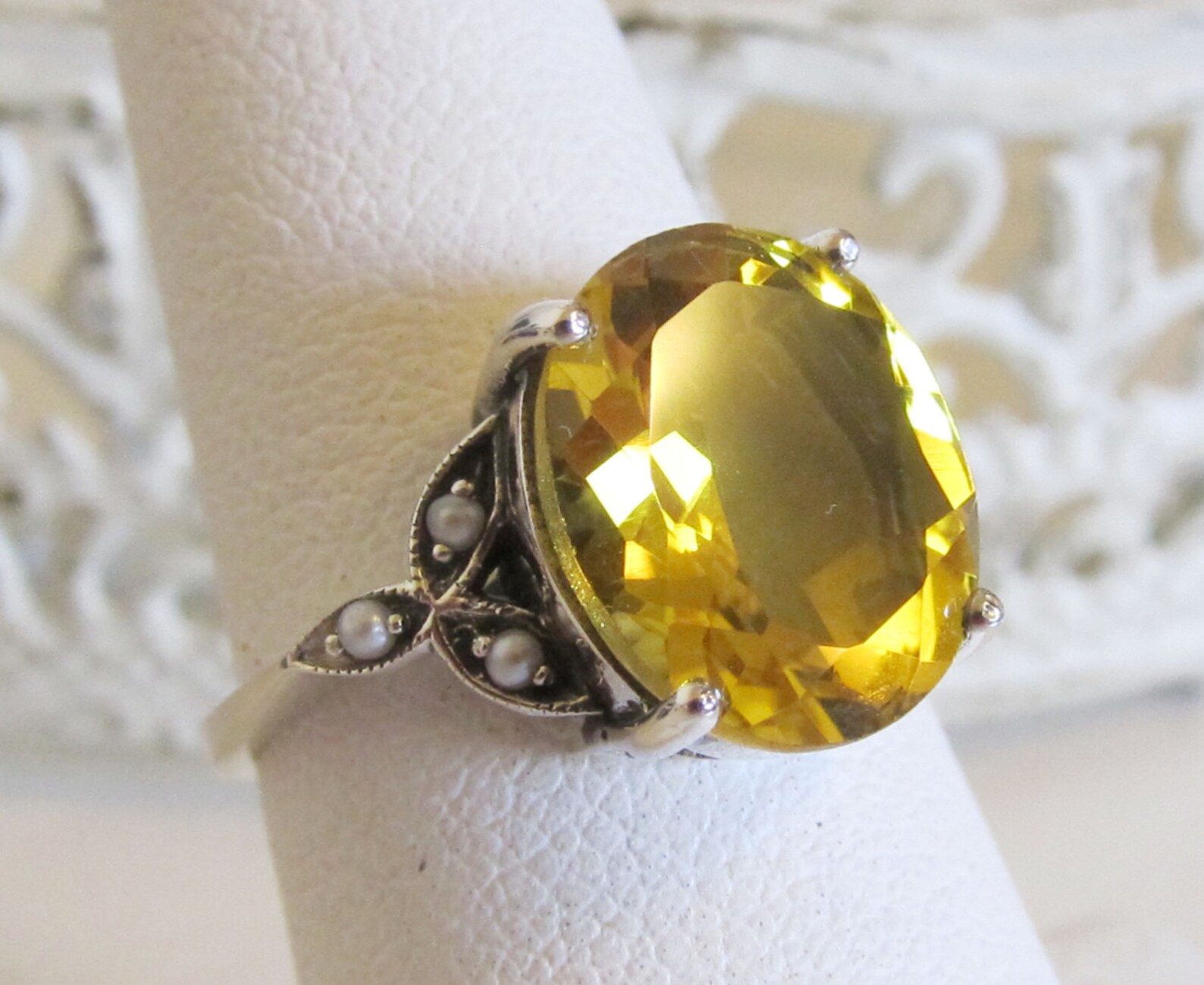 November Birthstone Ring Citrine Seed Pearl Sterling Silver/ Etsy