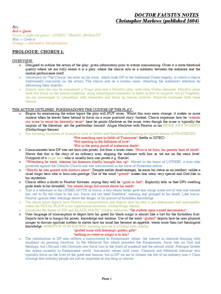 Prologue Chorus 1 Doctor Faustus Notes Christopher Marlowe