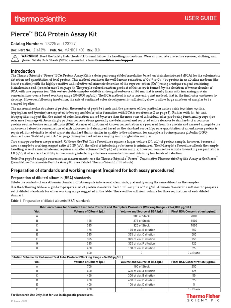 Pierce BCA Protein Assay Kit User Guide PDF Physical Sciences