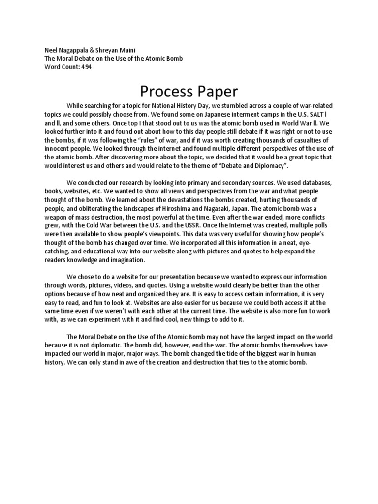 NHD Process Paper Manhattan Project Nuclear Weapons Process Paper Nhd Examples See how to cite sources, follow rules, and present your. The process paper must include four sections that explain: When i was exploring the topics my instructor recommended, i was immediately fascinated by the political instability and social. Learn the key elements of an nhd process paper, a required element for any nhd project entry. Find examples of nhd projects. Process Paper Nhd Examples.