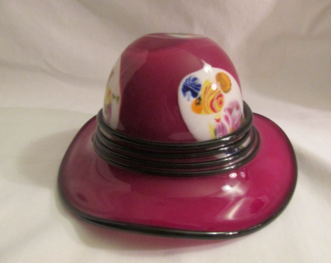Murano Glass Hat Burgundy Purple With Black Glass Bands and Etsy