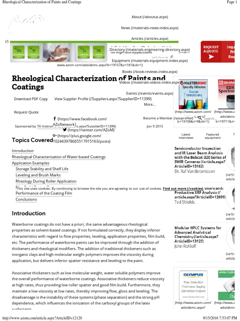 The Role of Thickeners in Optimising Coating Formulations SCAA Paint Rheology Pdf rheology and coating flows. optimizing rheology for paint and coating applications. Otective and decorative coatings industry is how to understand the relationship of rheology to. this article deals with the rheology behavior of polymer melts and polymer solutions and considers how these materials relate to. paint rheology is understood to play a vital role in both. Paint Rheology Pdf.