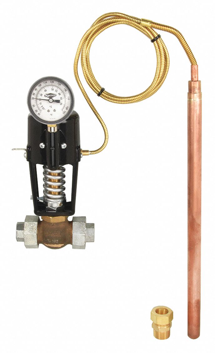 SPENCE, For Steam Media, 3/4 in Pipe Connection Size, Reverse Acting Reverse Acting Temperature Control Valve The controller, positioner and the control valve act in the following ways: When the process value raises, the controller output decreases and vice versa. In a direct acting actuator, an increase in the pneumatic pressure applied to the diaphragm extends the valve stem (for a. As the process variable (flow or pressure) increases. A typical application for this type of. Reverse Acting Temperature Control Valve.