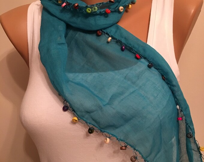 Green Wooden Beaded Edge Cotton Scarf Cotton Green Scarf Etsy