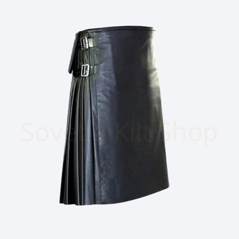Mens Black Leather Kilt Black Leather Pleated Kilt Soveba Kilt Shop