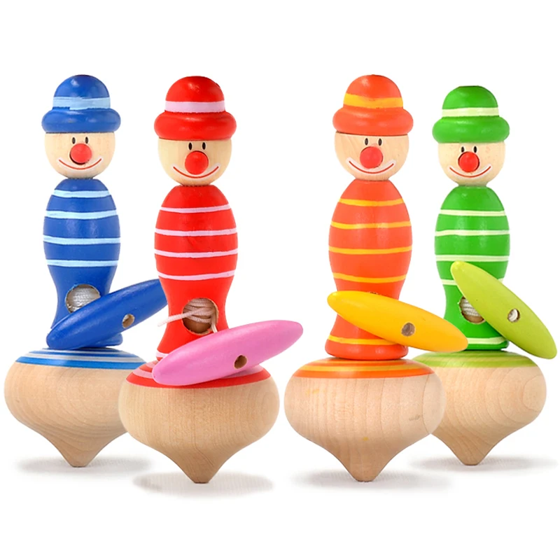 2 PCs kids wooden rope spinning tops, Children classic toys /wood clown