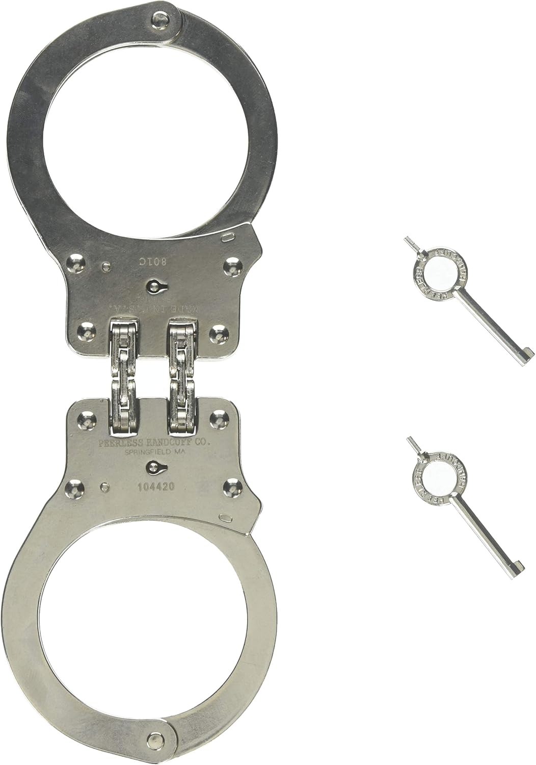 the peerless® hinged handcuffs provide additional restraint by more effectively restricting hand and arm movements. peerless manufacturers a complete line of chain and hinged handcuffs, leg irons, and restraint chains in the usa. the model 7030 is designed specifically for larger individuals or special security applications. The model 700c handcuff incorporates spun rivet. the peerless model 700c chain link handcuff is one of the most popular police handcuffs in the world. the model 700c features spun rivet construction, push pin double lock and nickel finish. Peerless handcuffs are the preferred tools for law. peerless model 730c superlite chain link handcuffs with black cerakote finish. Weighing in at just 5.2 ounces the. Peerless ® chain link handcuffs meet or exceed the national institute of justice standards for workmanship, mechanical.