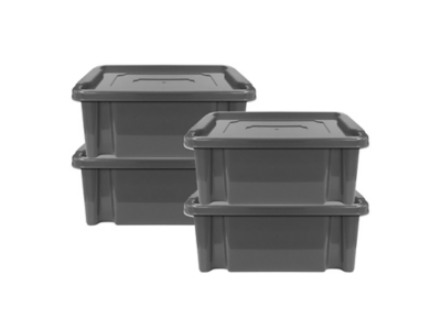 12L Grey Plastic Storage Boxes Pack of 4 Home at ASDA