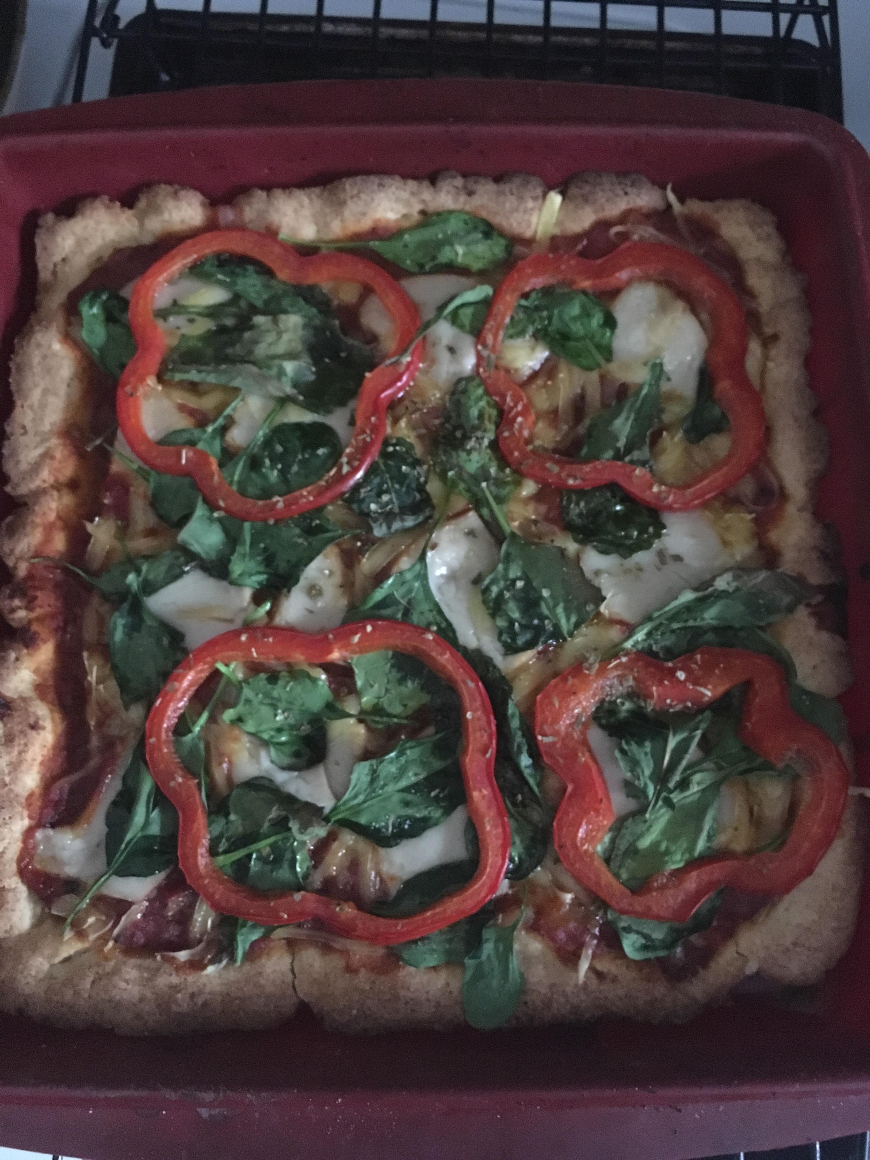 Glutenfree/Dairy free pizza. Made with a smoked cashew mozzarella and